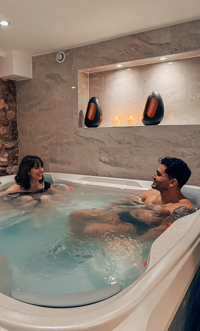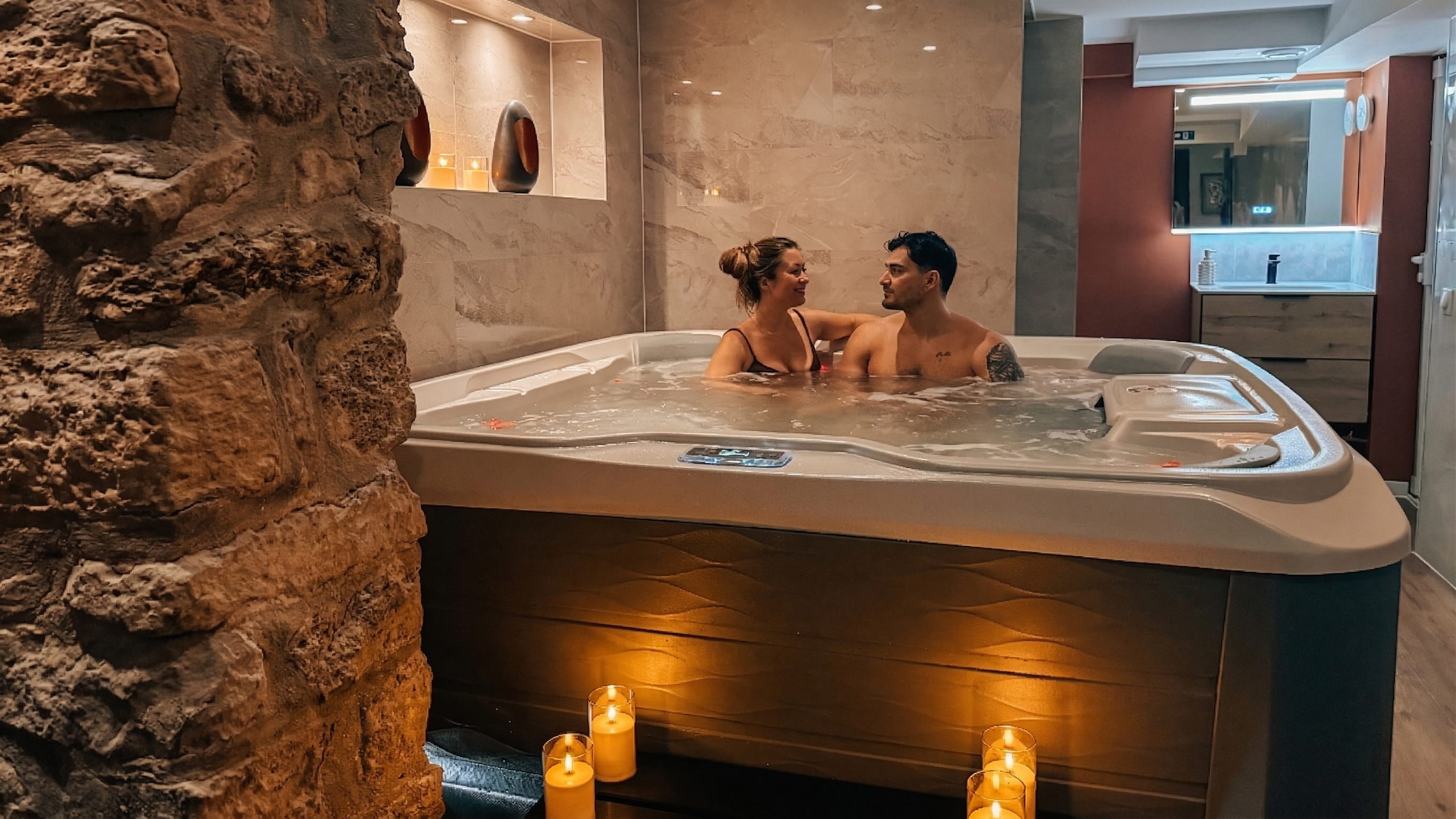 Jacuzzi privatif à Paris Plongez dans notre bain bouillonnant privatif. Jets d'hydromassage, ambiance tamisée et chaleur enveloppante pour une détente profonde.