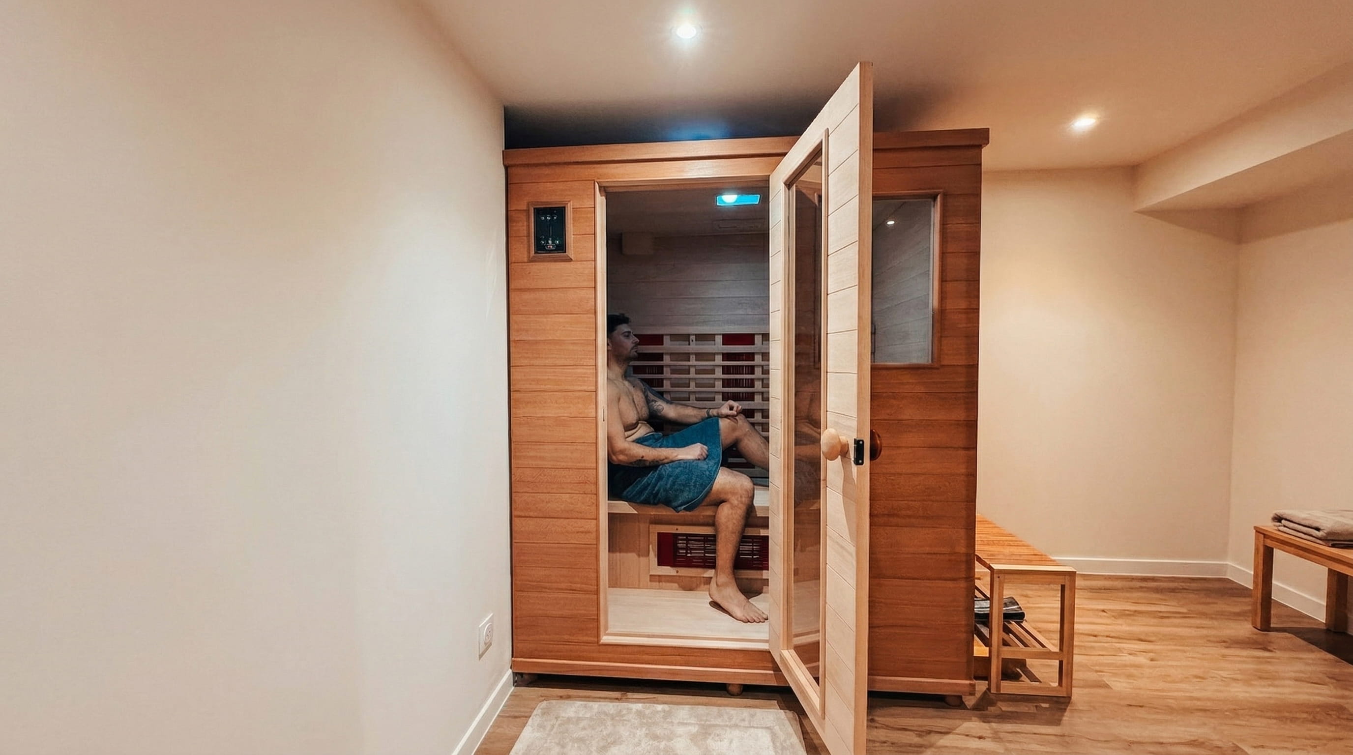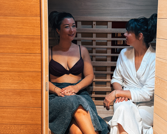 Laissez la chaleur sèche du sauna infrarouge dissoudre vos tensions. Un rituel ancestral revisité dans un cadre moderne et intime, privatisé pour vous seuls le temps de votre session.